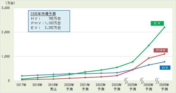 出典:2021年にEVがHVの販売台数を上回る、電動車市場は4000万台に - MONOist(モノイスト)